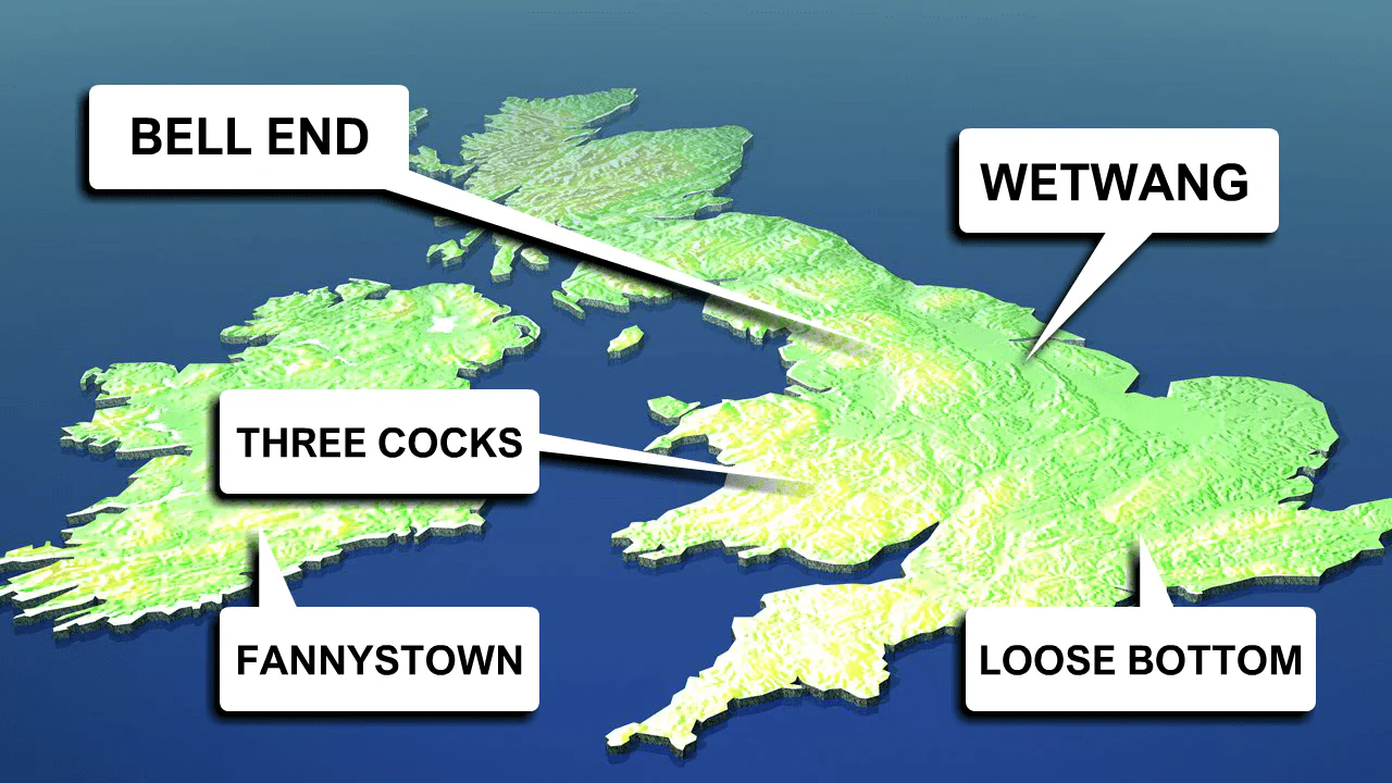 These names sound like ordinary ones when read or heard quickly but reveal a hidden, often risqué meaning when said aloud.