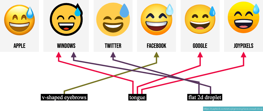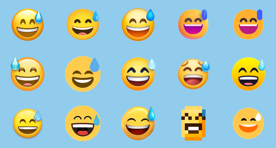 Apple renders the nervous laugh emoji with vibrant blue sweat; Android opts subtler tones.
